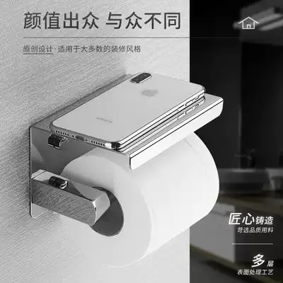 Reel toilet paper holder 304 stainless steel dressing room mobile phone rack toilet sanitary paper box wall-mounted paper towel rack free of punching