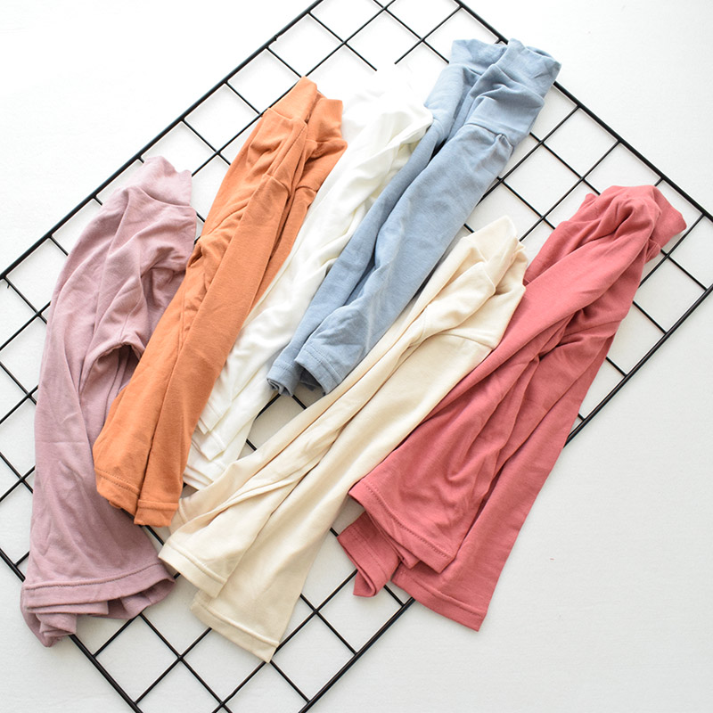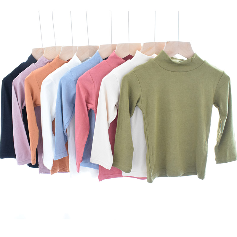 Children's bottoming shirt boys and girls spring and autumn all-match long-sleeved T-shirt high-necked large elastic candy color basic soft