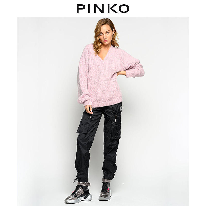 PINKO women's V-neck alpaca loose knit sweater 1Q1016Z952
