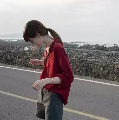 South Korea 2021 early autumn shirt women's design sense niche loose long sleeve Hong Kong flavor retro shirt foreign pie top