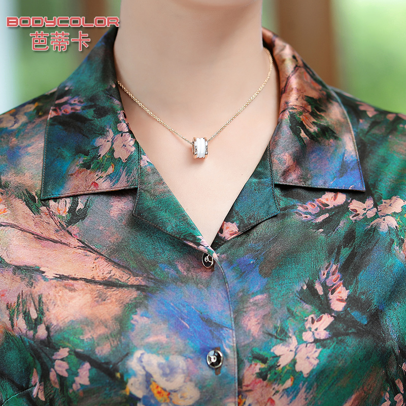 2022 new middle-aged and elderly women's mother spring dress silk shirt grandma's spring and autumn mulberry silk top fragrant cloud yarn