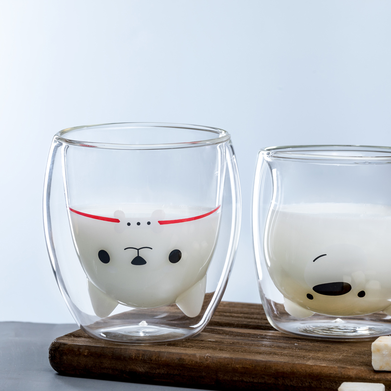 Home Double Water Cup Animal Coffee Cup Small Bear Cup Breakfast Milk Cup Children Glass Water Cup heat resistant coffee cup