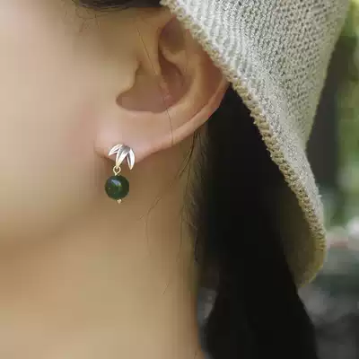 Dani original s925 sterling silver earrings natural jade pin earrings retro simple earrings creative earrings