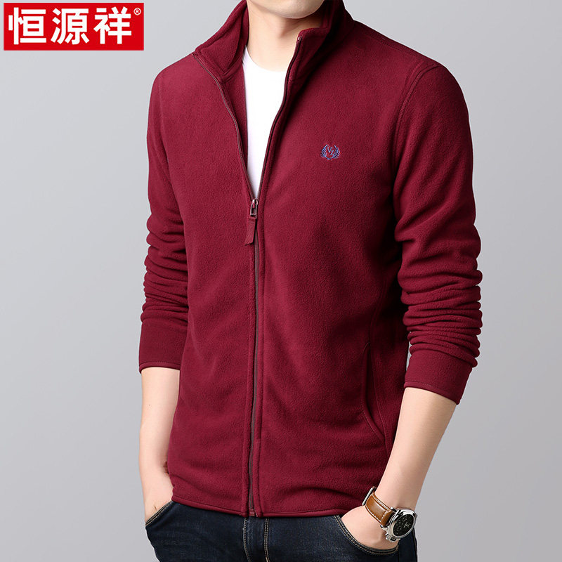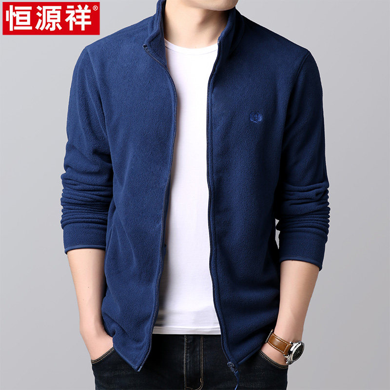 Hengyuan Xiang Men's Shaking Grain Suede Jacket Spring Autumn Thin blouses jacket upright collar cardiovert thick cotton T Men's casual grabbing jacket kshirt