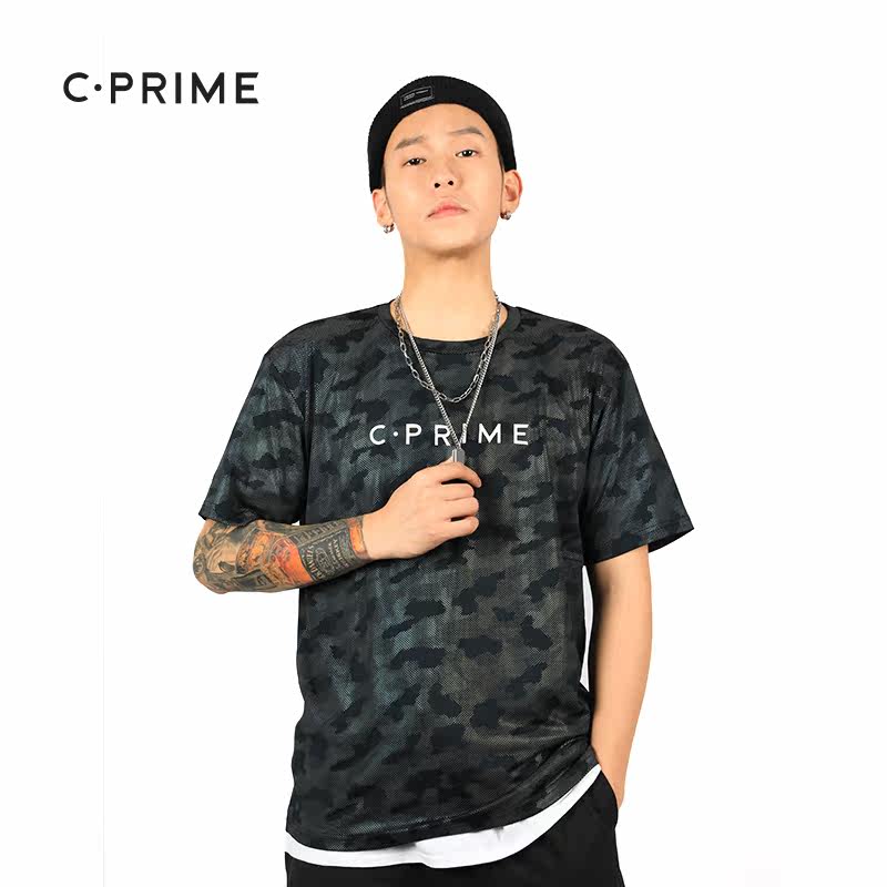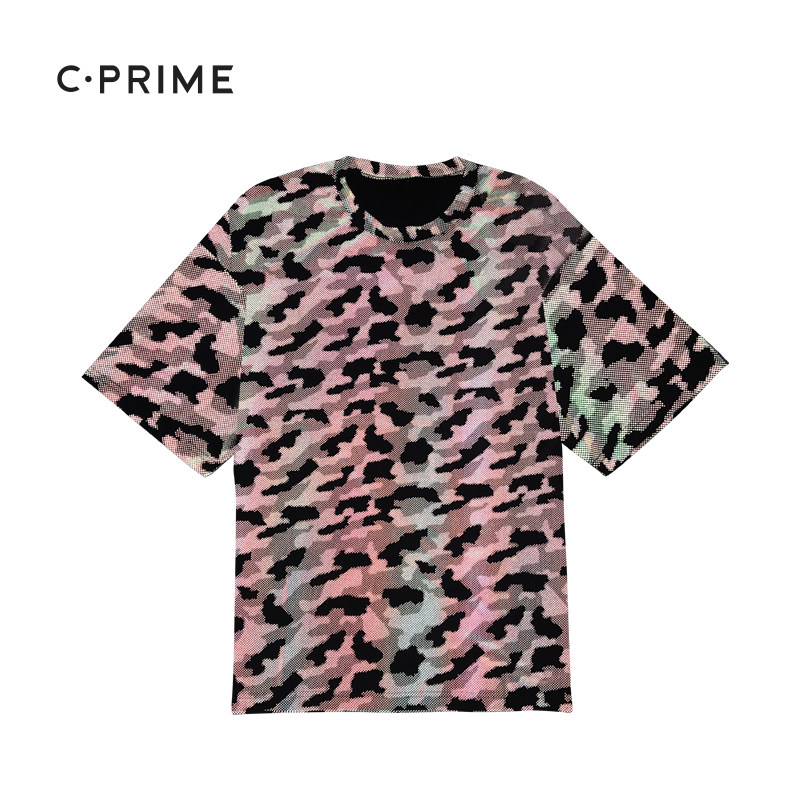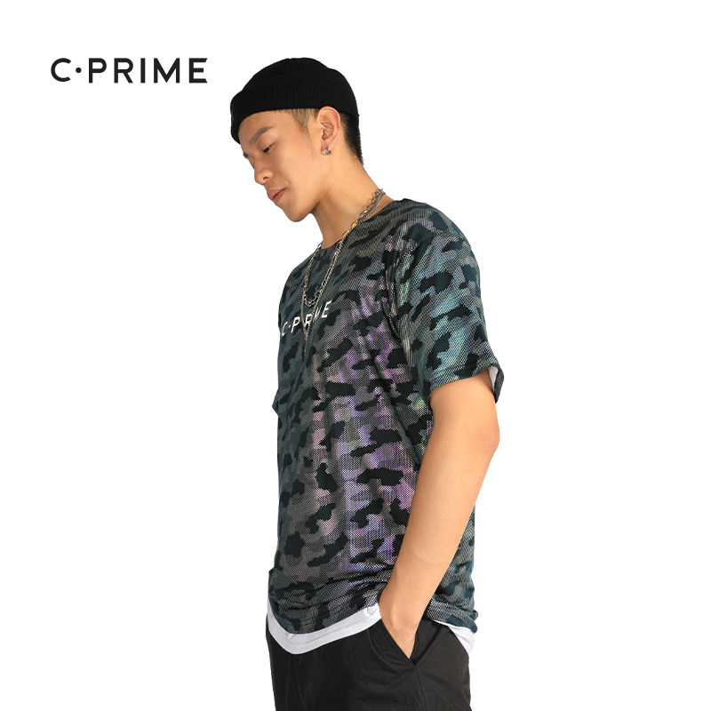 CPRIME refraction T-shirt hip-hop loose large size 2019 new trendy brand hip-hop camouflage sports short-sleeved men
