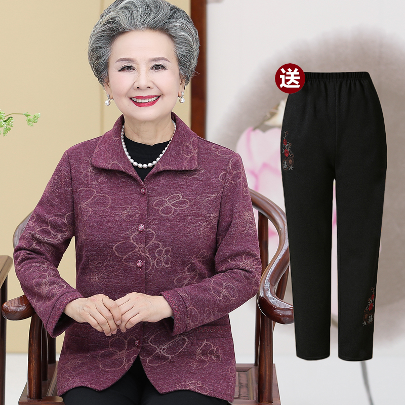 Grandma dress long sleeved shirt 60 - 70 - 80 years old woman clothes coat mom dress suit