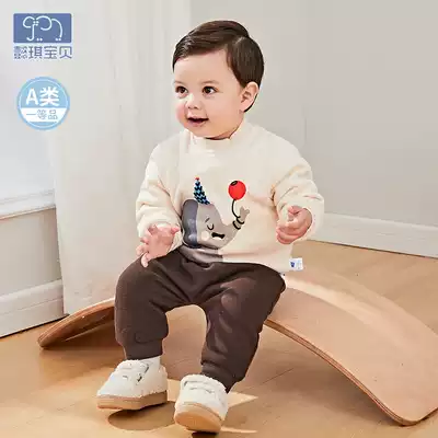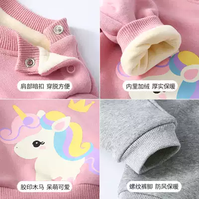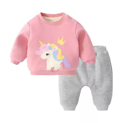 Baby autumn and winter suit plus velvet girls ' clothes thickened one-year-old children's casual tops winter warm children's winter clothes boys