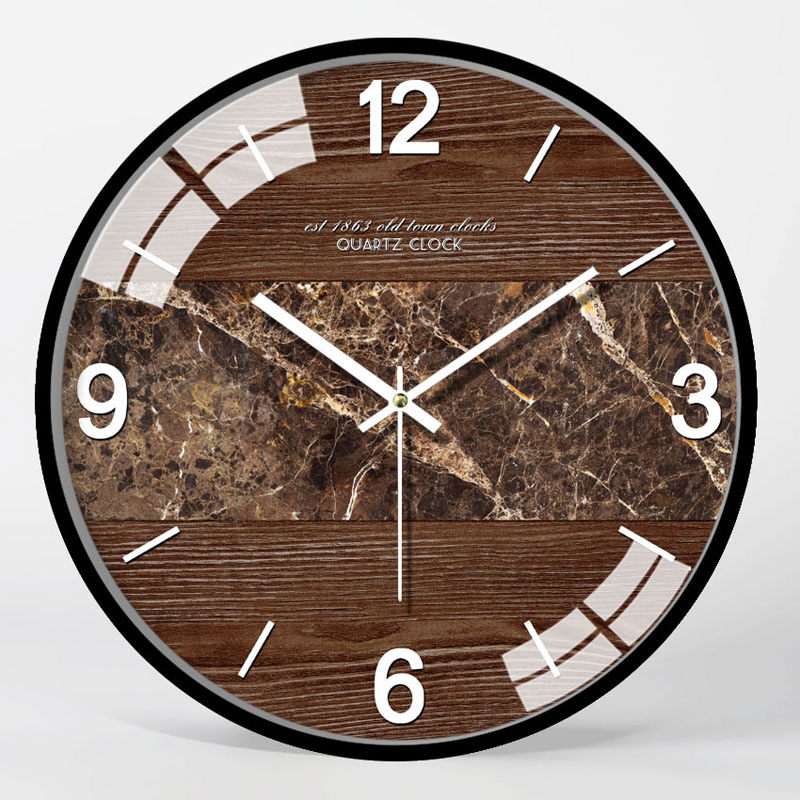 Sanskrit modern European creative wood grain silent wall clock modern fashion living room personality American bedroom Nordic clock
