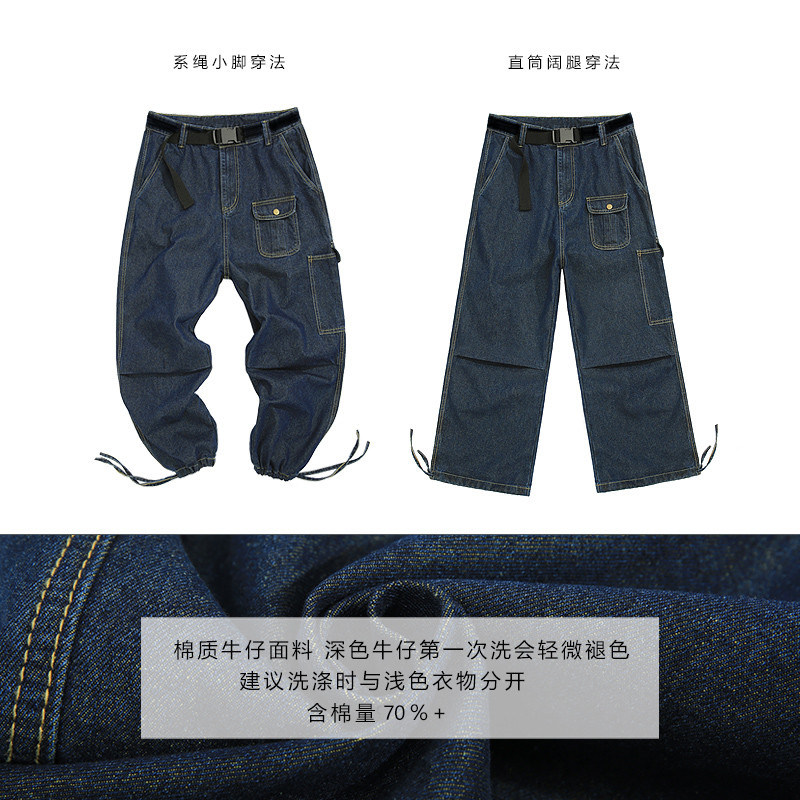 Purify the eye homemade trendy brand jeans men loose straight overalls Hip-hop wide-leg bunched jeans men