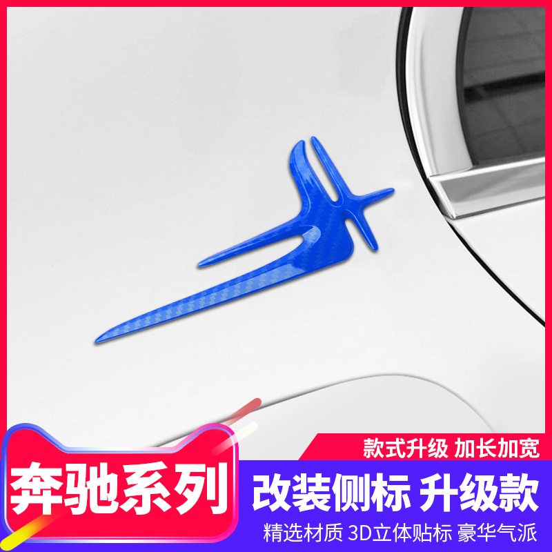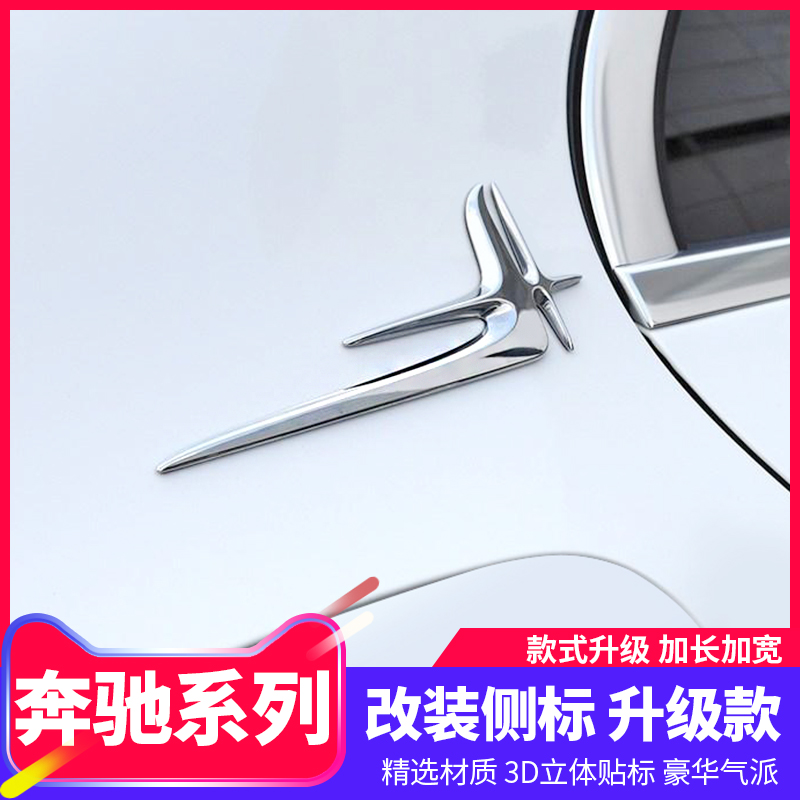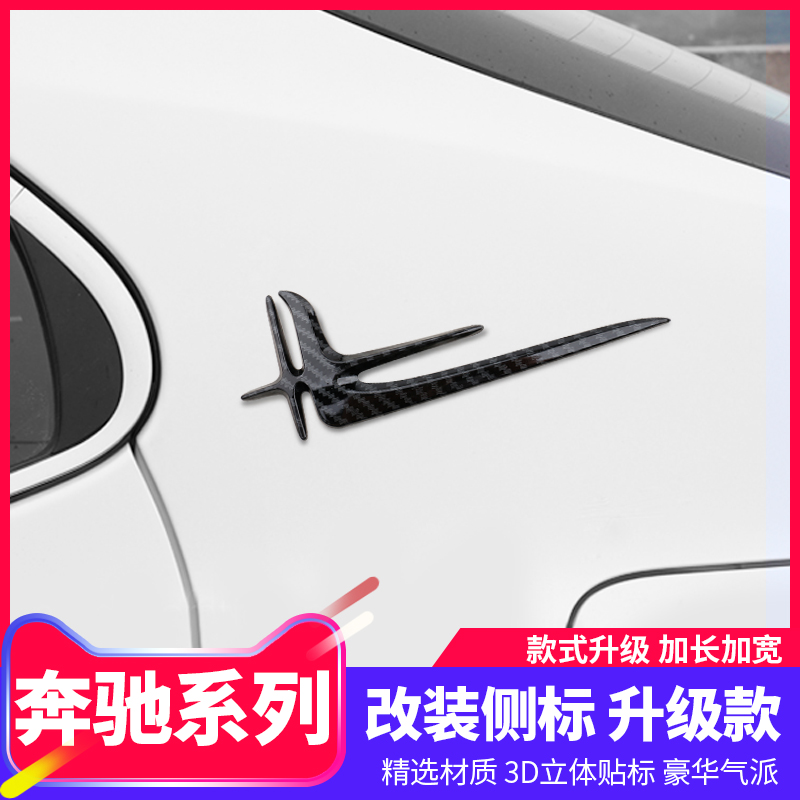 Suitable for Mercedes-Benz modified extended side logo stickers E-class S-class C- class C200L car extended side logo decorative stickers