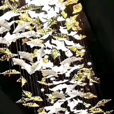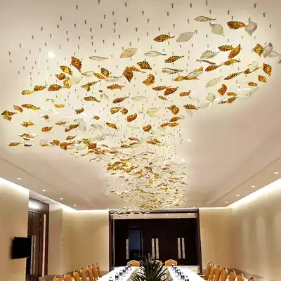 Creative glass hanging maple leaf ceiling hanging decoration hotel club Villa model room art soft hanging hanging decoration