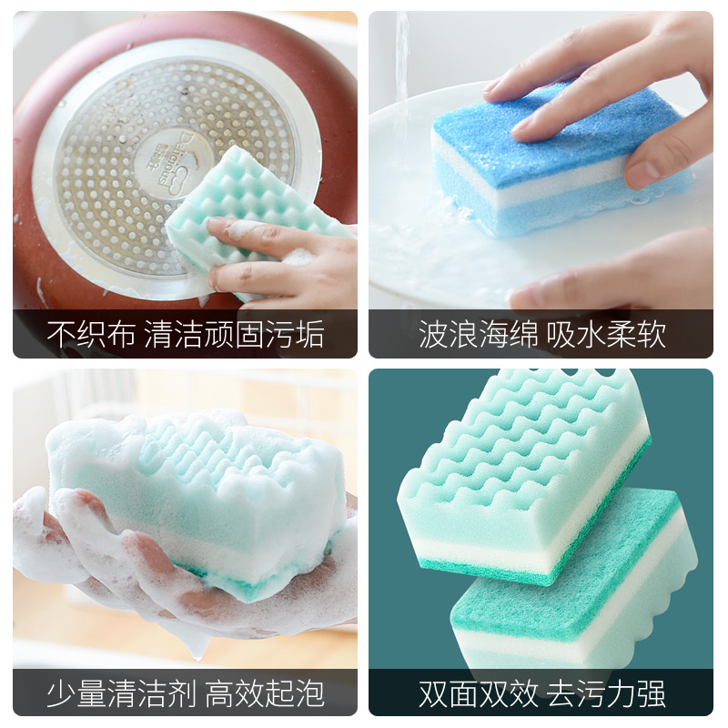 Kitchen cleaning cloth Dish washing sponge Double-sided brush pot bottom artifact cleaning decontamination Emery magic to erase rust and black scale