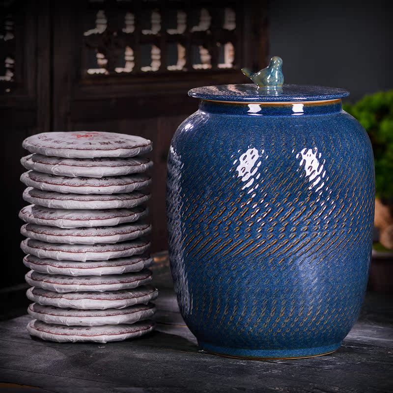 Jingdezhen ceramic tea pot tea cans high temperature glaze Pu-yu tea cake sealed large-scale tea storage tank
