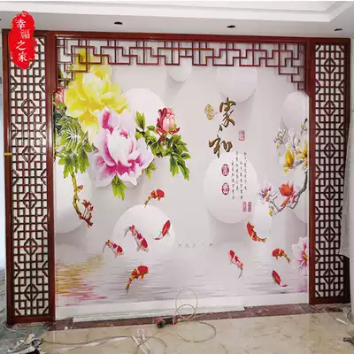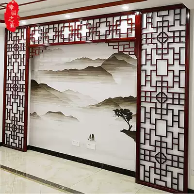 Dongyang wood carving new Chinese TV background wall solid wood flower grid living room hollow porch partition screen antique doors and windows