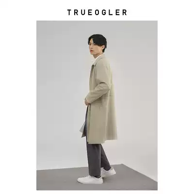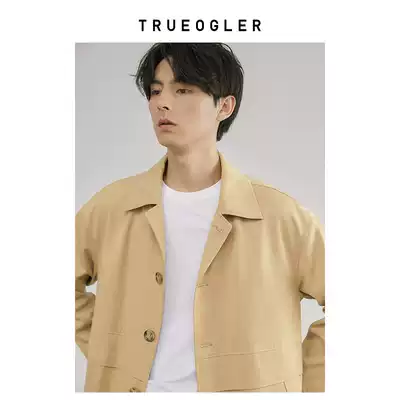 (Chu grid) Tencel trench coat man long version profile loose knee coat handsome lapel autumn knee coat