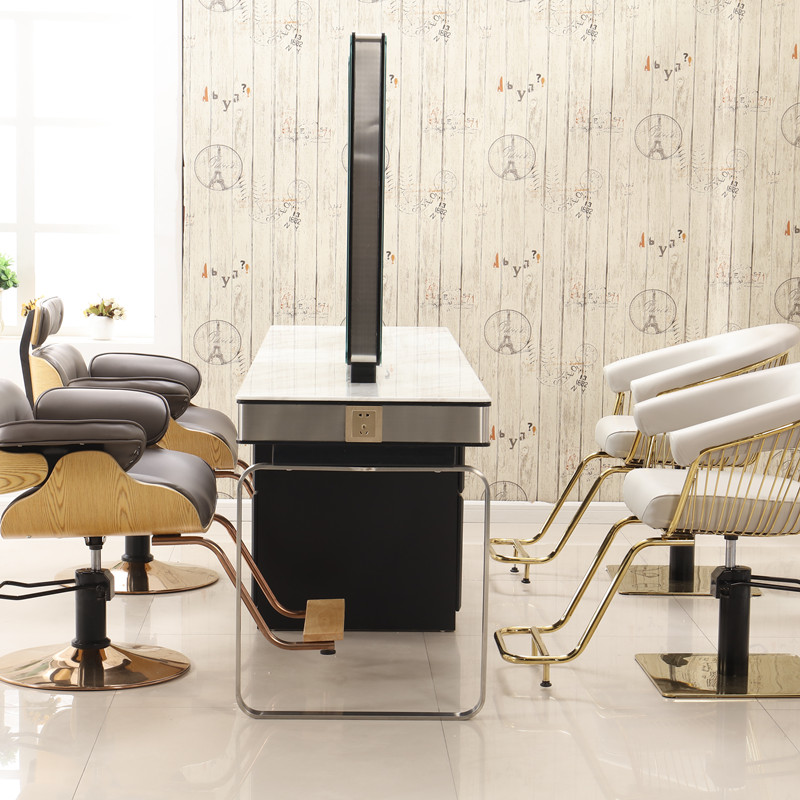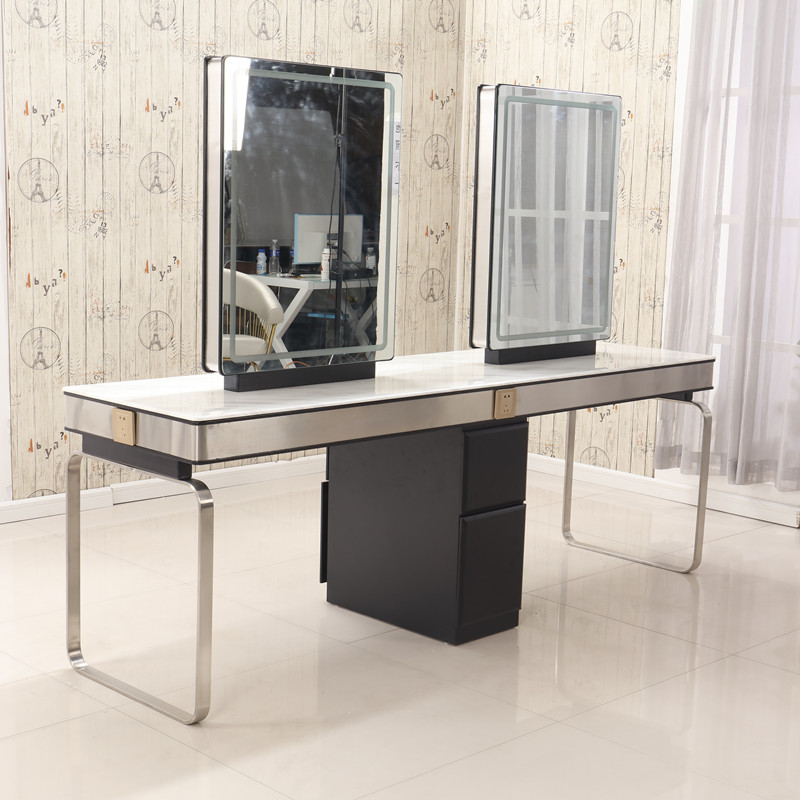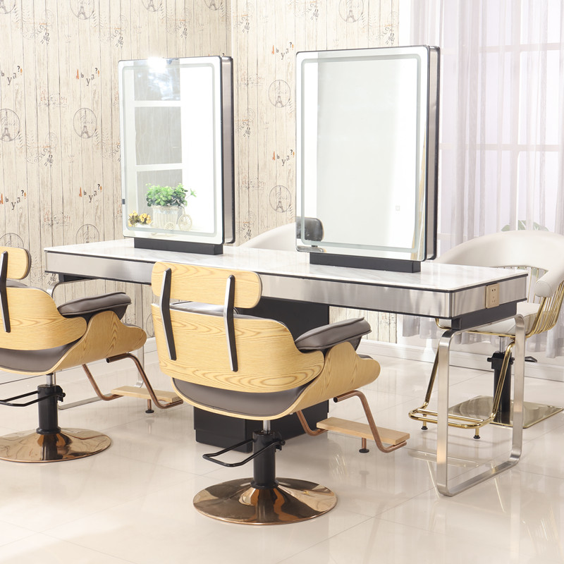 Solid wood hairdressing mirror table ironing mirror double-sided four-sided with light makeup mirror table Li Kun shop hair cutting mirror hair salon dedicated