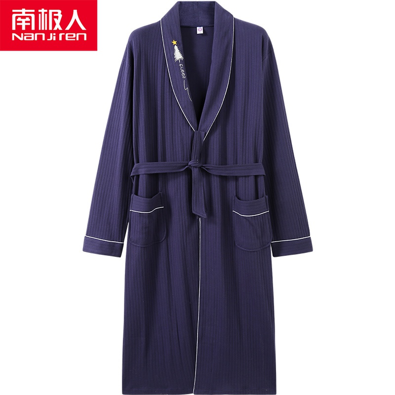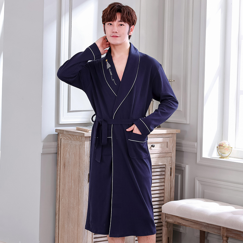 Sleeping Robes Men's Spring And Autumn Season Long Sleeves Pure Cotton Medium Long Version Bathrobe All-cotton Youth Men's Day Style Large Size Bathing Suit of Bathing Suit