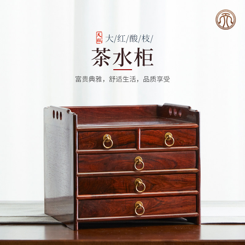 Large Red Acid Branches Full Single Plate Small Five Smoke Puer Tea Box Chinese tea Doug supplies Home solid wood Pendulum Fitting cabinet
