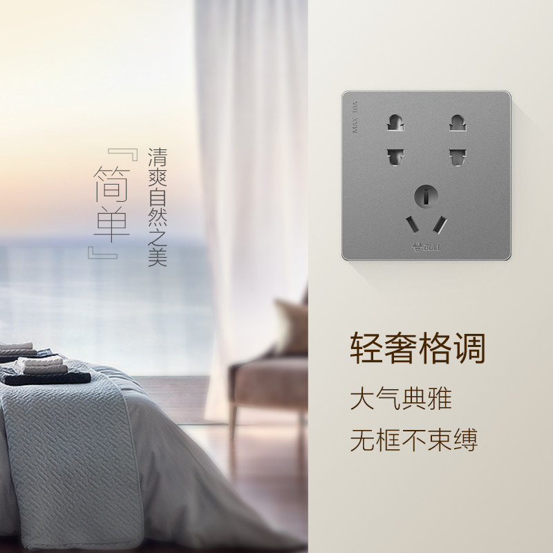 Bull socket flagship seven-hole socket panel 86 wall concealed 10A power panel porous socket G12 gray