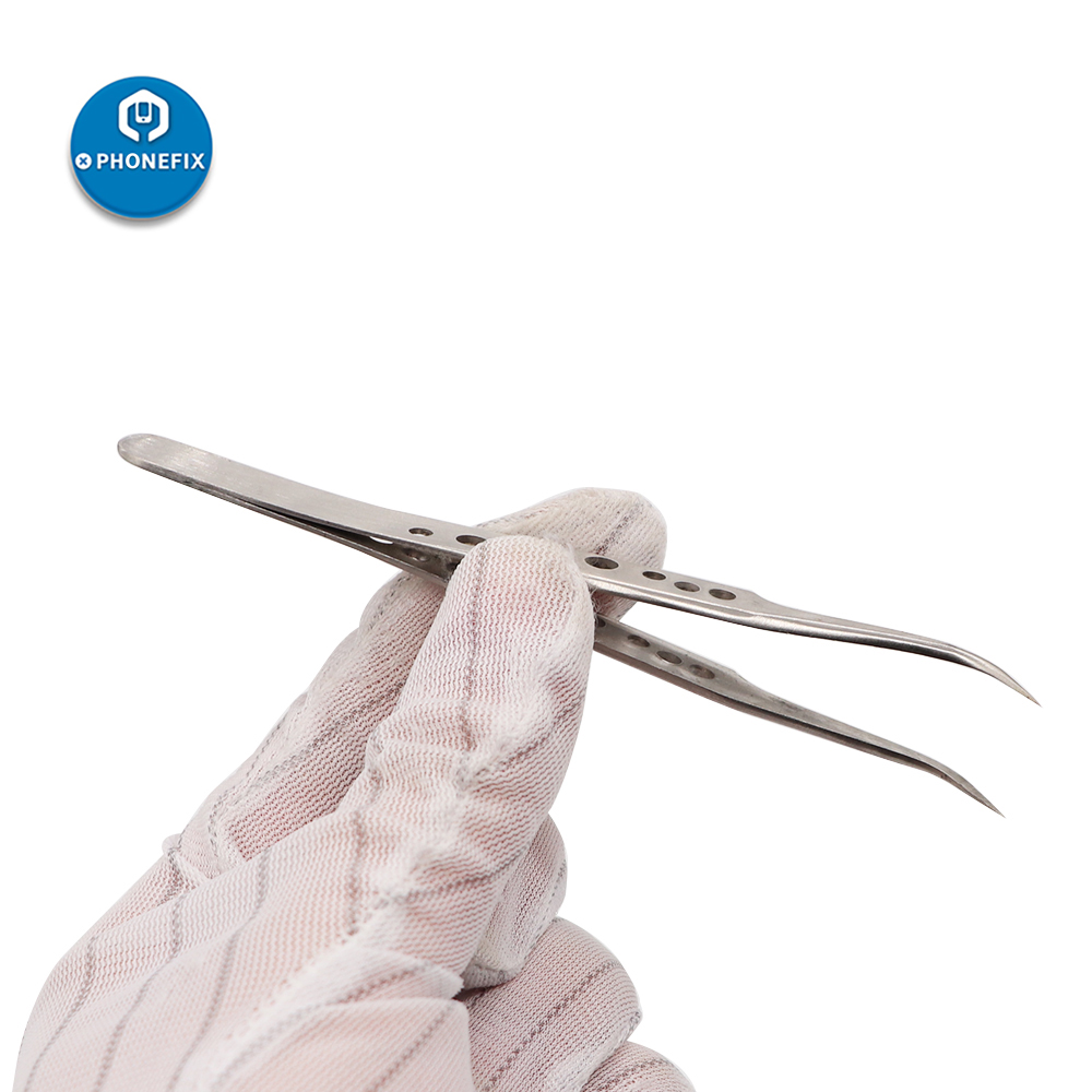 High precision tweezers stainless steel elbow tip with heat dissipation hole planting tin tweezers mobile phone repair tool flying line acne