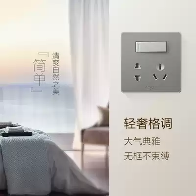Bull socket flagship one open five-hole wall socket switch double cut with switch panel single open 5 hole G12 Gray