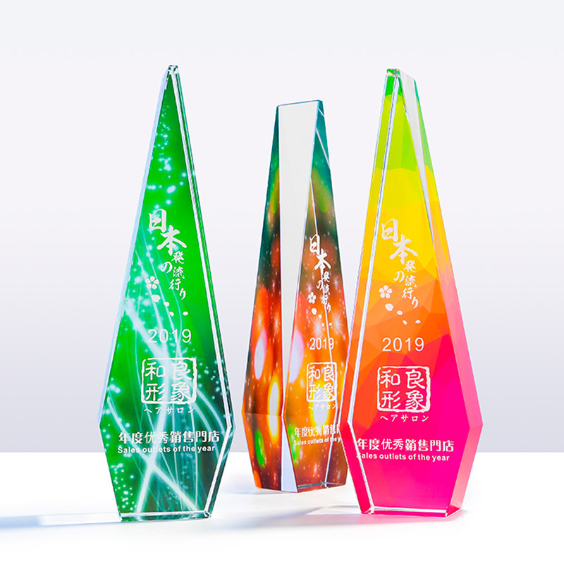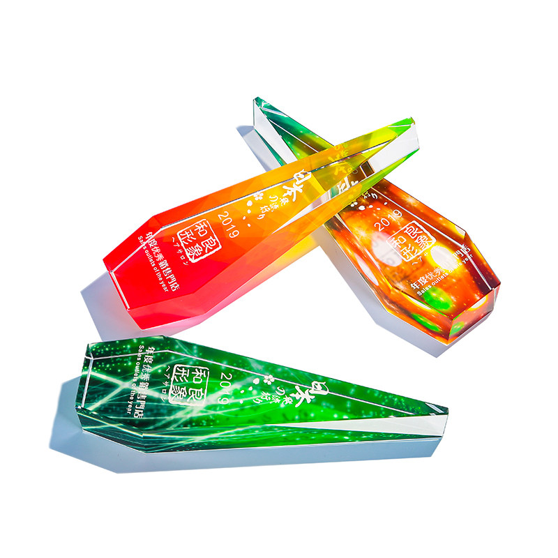 Crystal trophy custom made new color printed square body The top of the iceberg Honor medal printed photo competition souvenir
