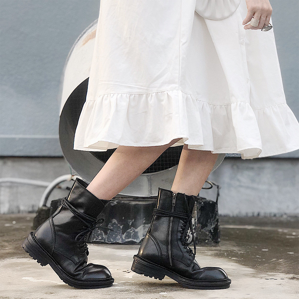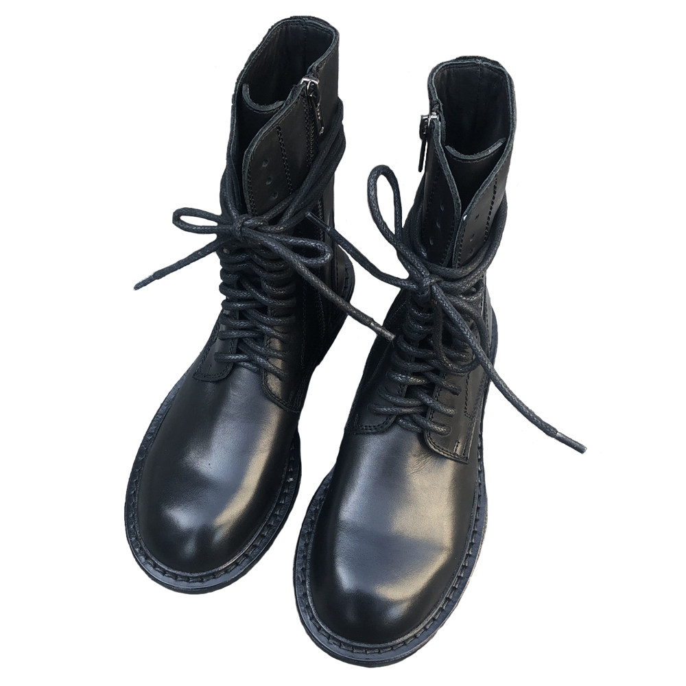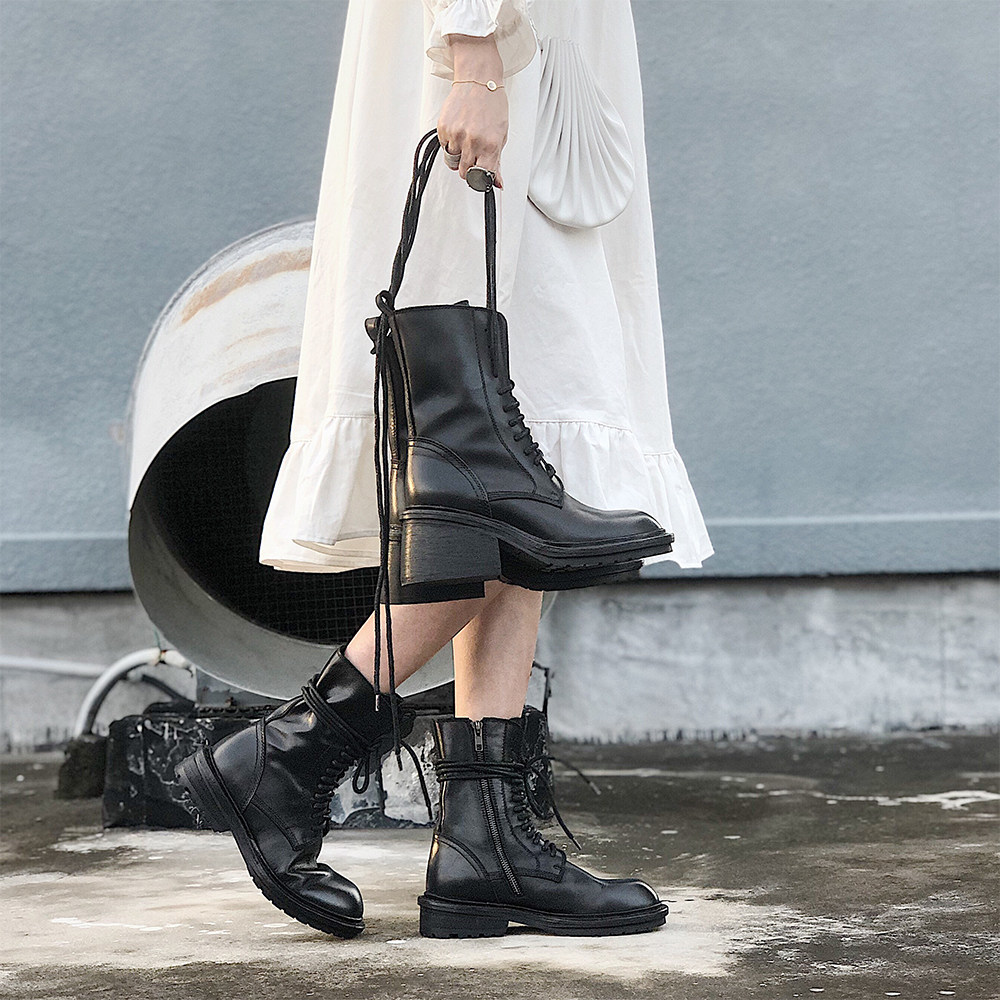 ann Martin boots (Rome to Hong Kong) female short boots retro genuine leather riding boots thick bottom mid-cylinder locomotive boots female