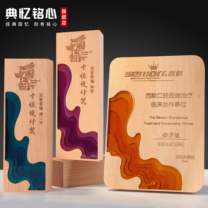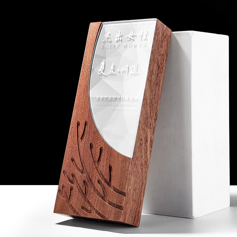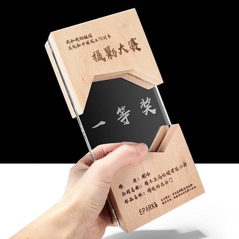 Wooden Trophy Customized Beech Wood Laser Engraving Awards Crystal Trophy Customized Crystal Trophy Creative Souvenirs