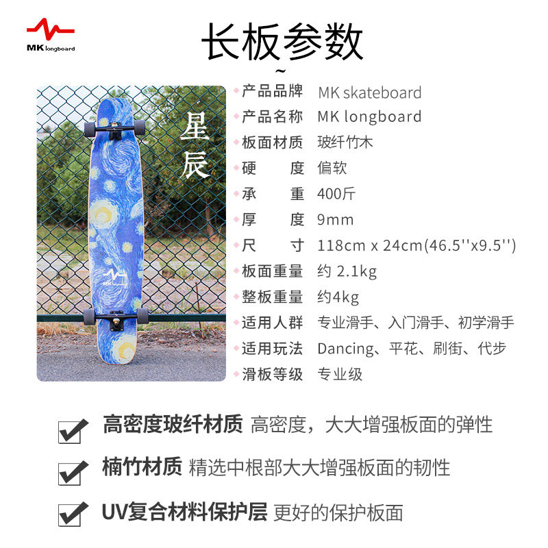 MK Stars Chen Long Board Professional Board Beginners Skateboard Adults Girls Dancing Starry Sky Boys Flat Flowers Brushed Street Boards
