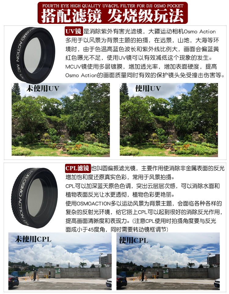 Suitable for DJI DJI OSMO Action Camera accessories CPL polarized ND8 dimming mirror UV filter