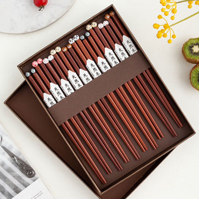Day Style Creativity Home Wood Chopsticks Cute Cartoon Animal Solid Wood Lovers Chopsticks Korean Version Pointed Wood Chopsticks Non-slip