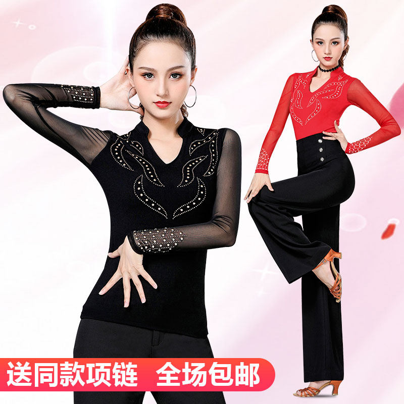 Lady Latin dance blouses Morden dance performance clothes on social dance practice Costume Adults Jump square Competition to play out