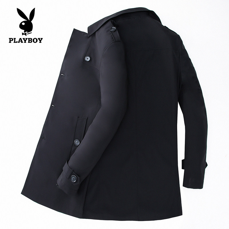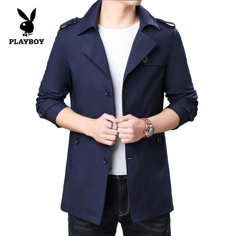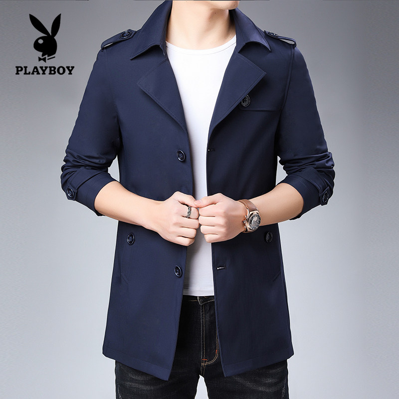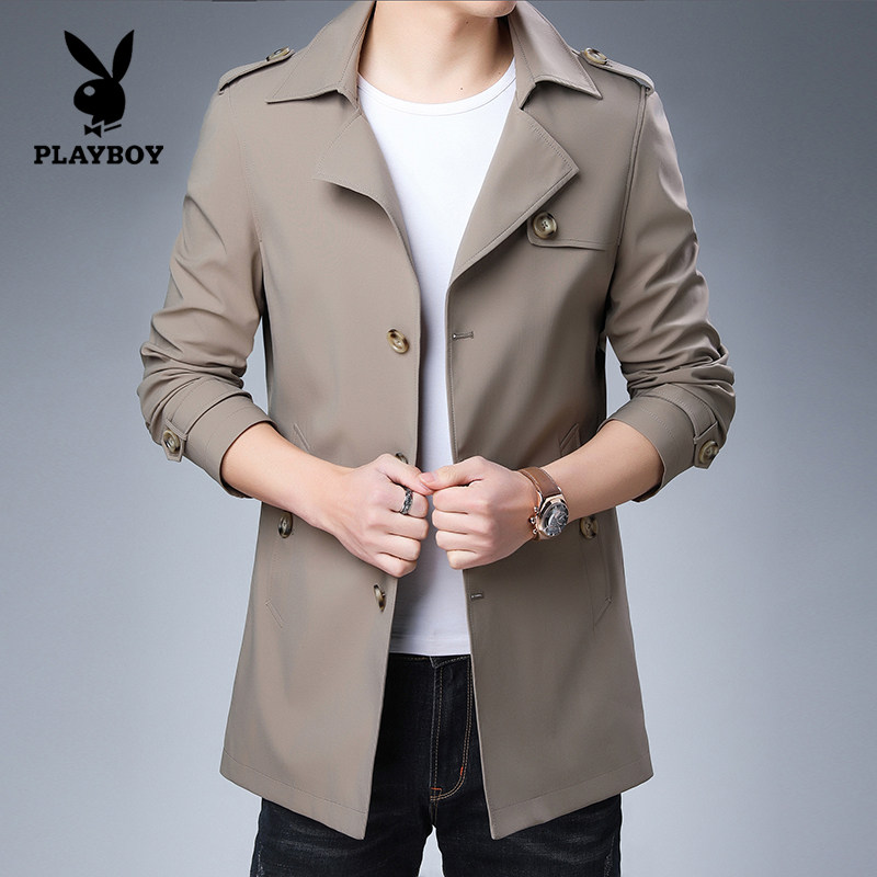 Playboy men's jacket spring autumn new mid-length men's coat Korean style trendy casual handsome windbreaker