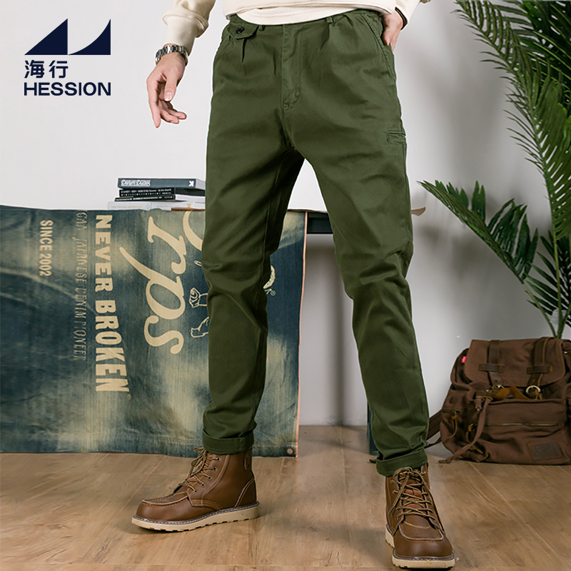(Break Code Clear 75 Fold) Card Its Color Straight Cylinder Long Pants Men Spring Autumn Pure Cotton Washed Casual Pants Workout Pants