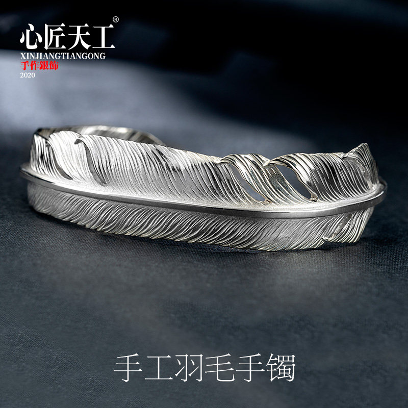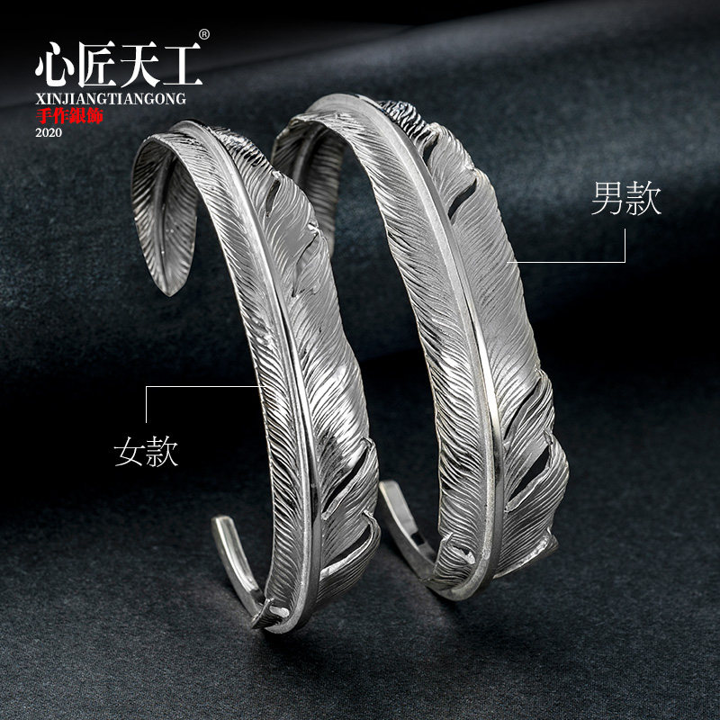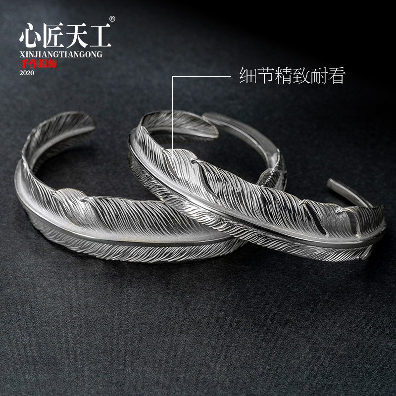 925 Pure Silver Bracelet Male Tide Man Accessories Original Design Handmade Diy Feather Opening Bracelet Woman Custom Gift