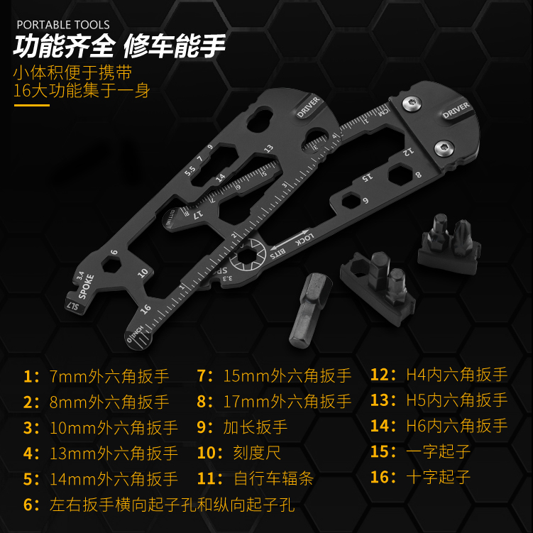 Mountain Bike Gadget Outdoor Cycling Activity Wrench Multifunctional Combination Tool Black Screwdriver Hexagon
