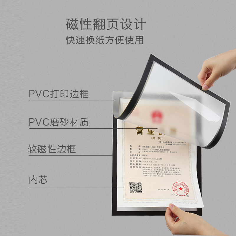 Rip A3 Vance High Magnetic Paste a4 Industrial and Commercial License Frame Protective Cover Magnetic Card Set Award Wall Food Business License Photo Frame a5 Wall Paste Magnetic Soft Rubber Set Nail Free Card Set