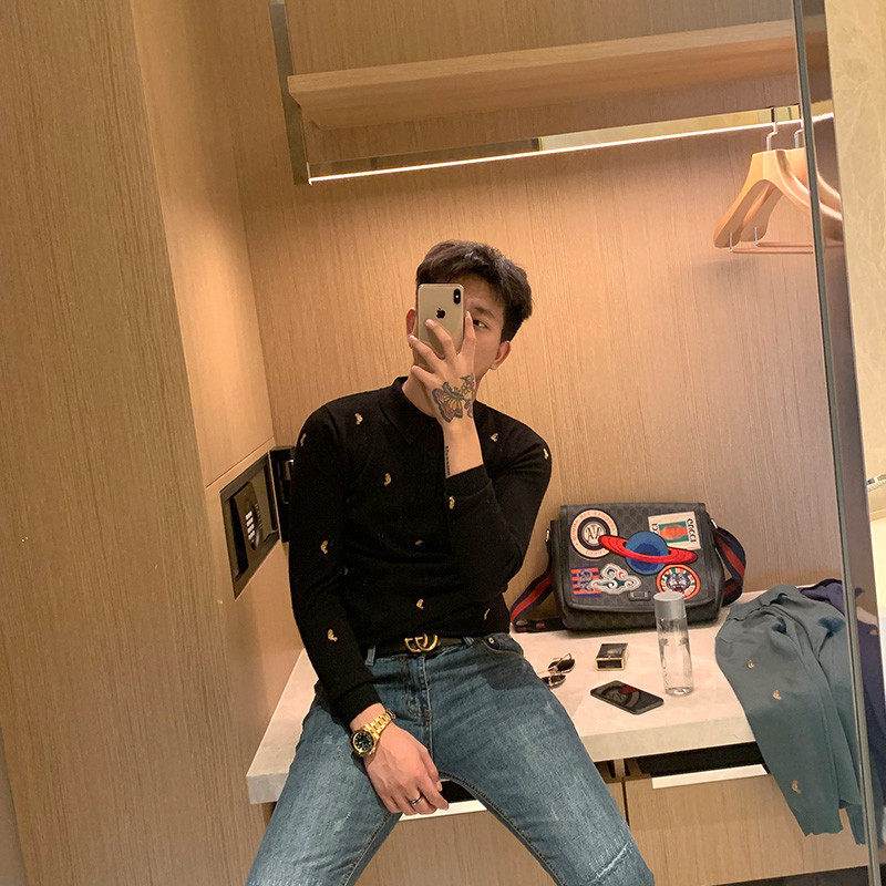 BROTHER Autumn Men's Lapel Seahorse Embroidered Knitwear 22ss Korean Fashion Casual Slim Sweater Men