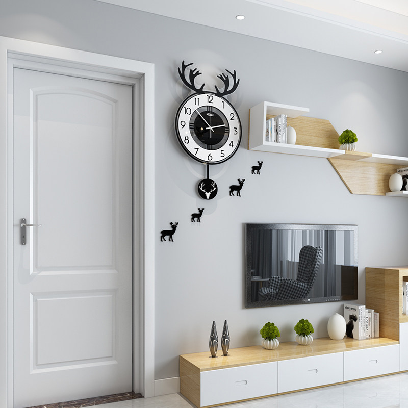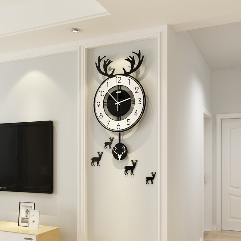 Nordic deer head wall clock net red creative living room household simple personality fashion light luxury art decoration watch hanging wall