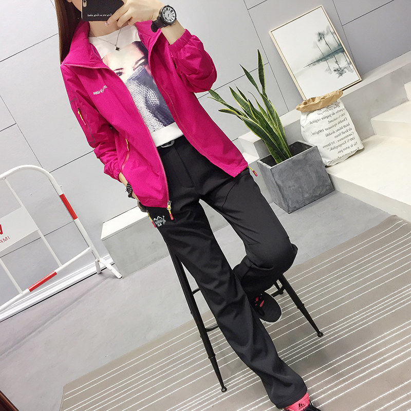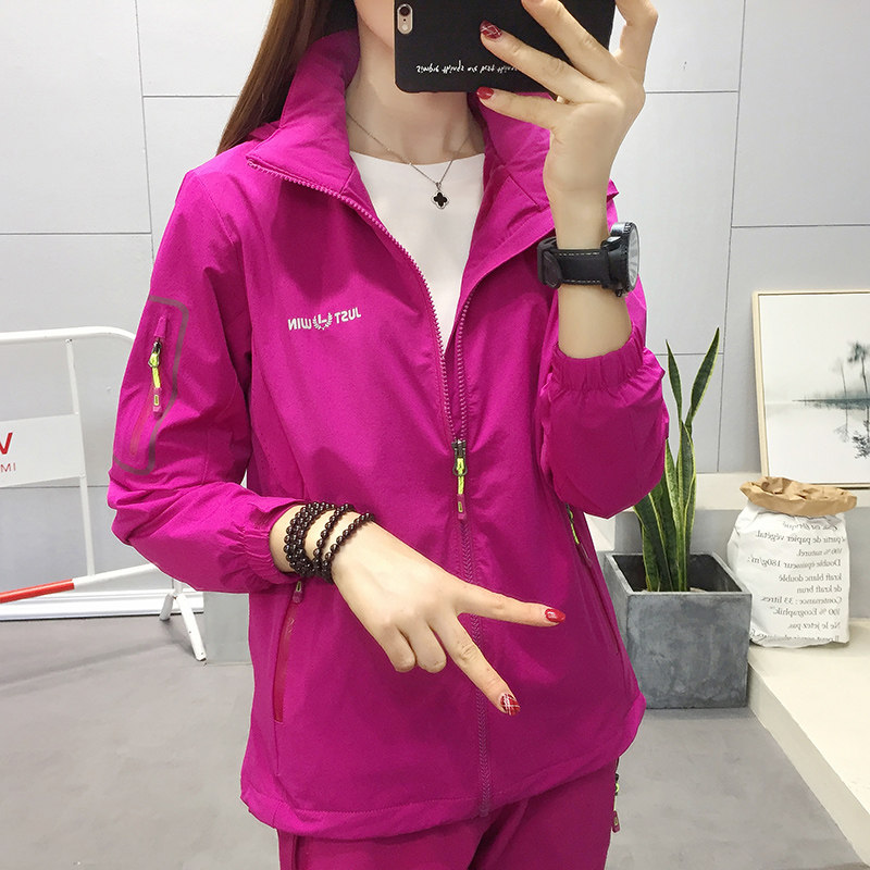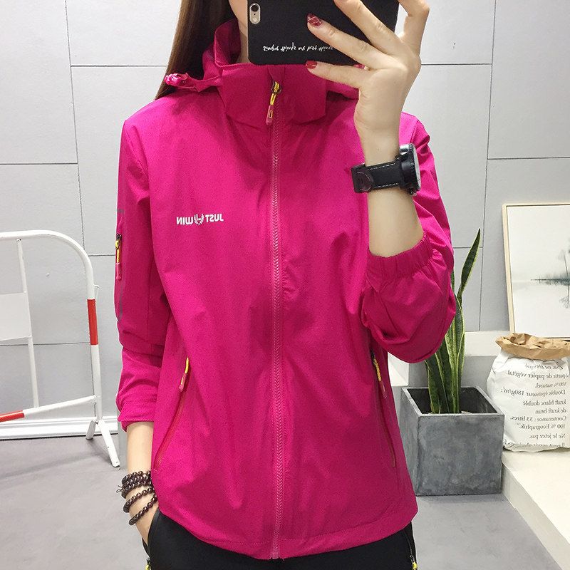 Outdoor Assault Suit Woman Spring Autumn Season Single Layer Elastic Waterproof And Breathable Plus Suede Cap Sports Windsuit Jacket Mountaineering Suit