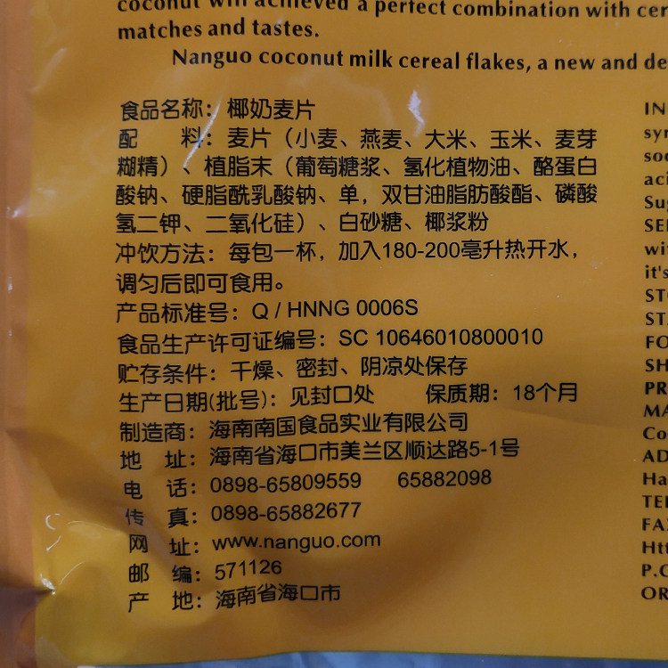 Hainan special Coconut Milk Cereal 560 gr Ready-to-eat Oatmeal Water Fruity Taste Breakfast Rind for Nutritional Small Bagels