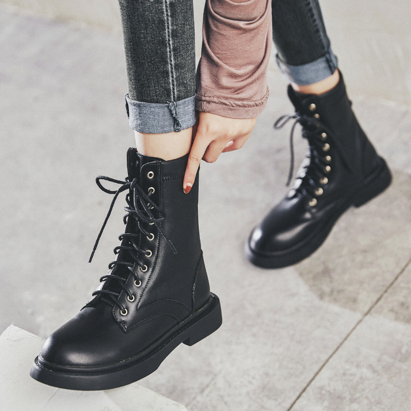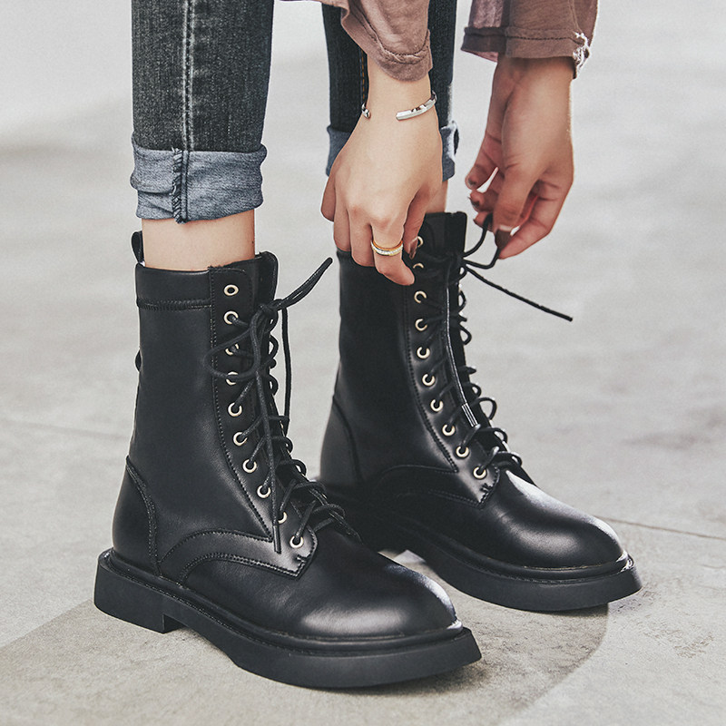 Martin boots woman 2020 new autumn and winter 100 lap net red flat bottom Inron fan car boot female midcylinder short boot