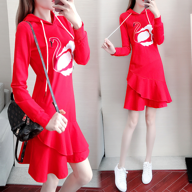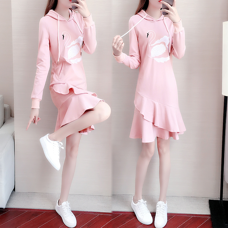 Spring and autumn long version of thick cotton T Women's thin section 2022 New Korean version loose Long sleeves Liant-shirt fashion The long version of the foreign dress