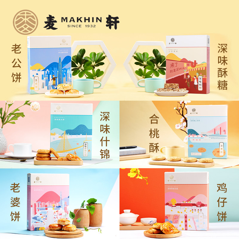 Mak Xuan Shenzhen specialty six boxes (wife cake husband cake chicken cake Peach crisp deep flavor assorted deep flavor shortbread) Gift box