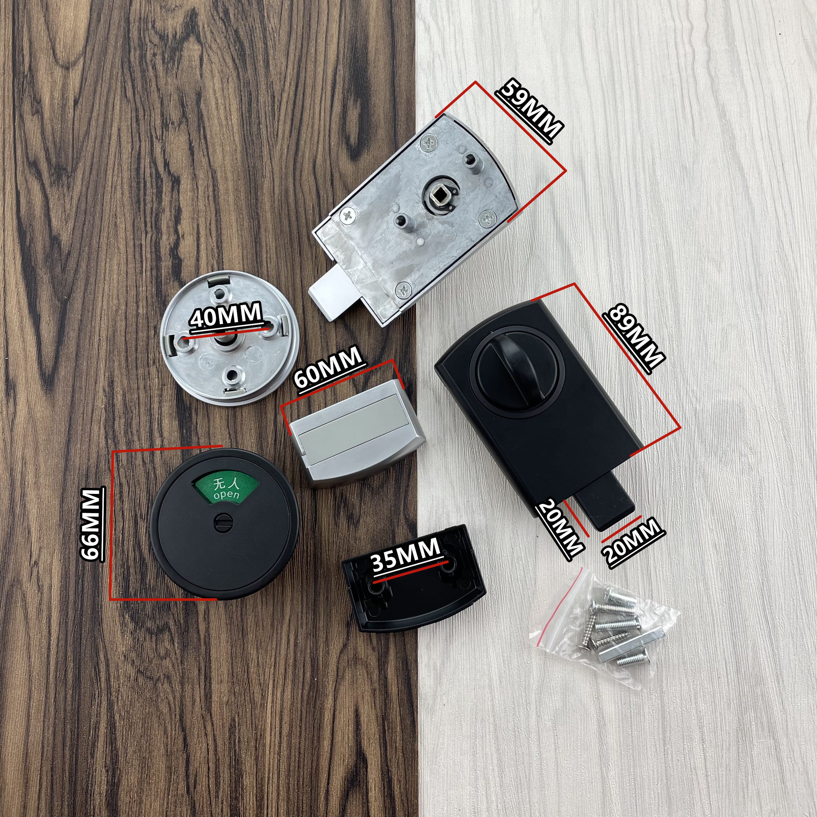 Otako Public Toilet Makeup Room Separator Accessories Silver black door lock with no room to indicate the bolt lock