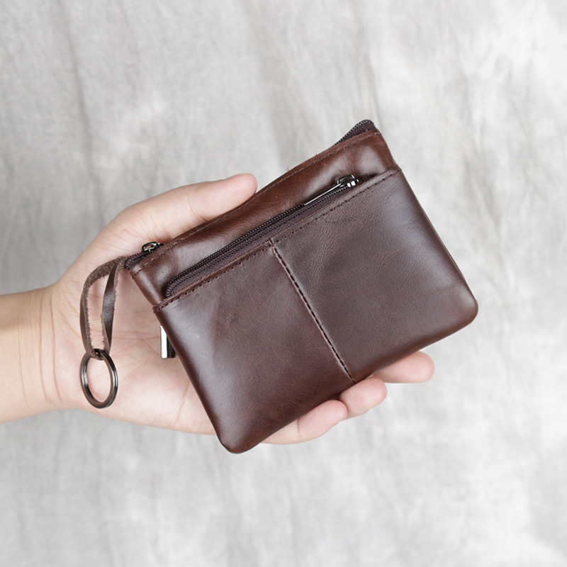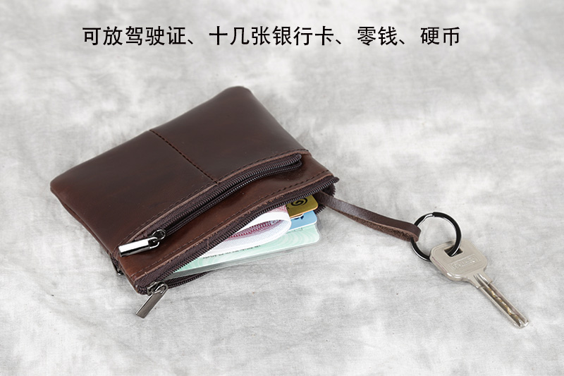 Handmade leather small change card card bag head coat zipper driver's license pack bus card keyboard