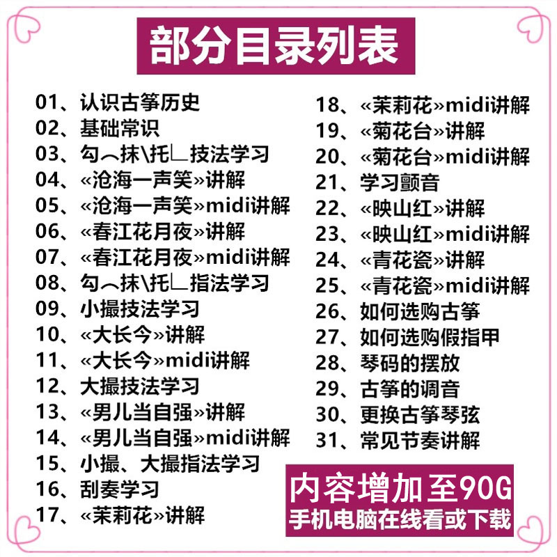 Guzheng video tutorial teaching new version Yuan Sha easy learning beginner set of high-definition self-study course music score