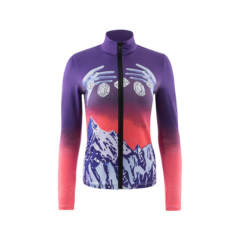 Slim-fit quick-drying fitness top women's long-sleeved net red gym running suit thin printed jacket autumn and winter