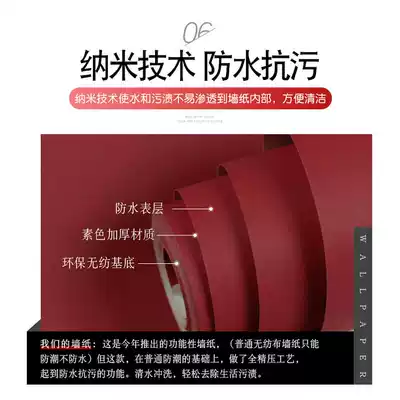 Norse crimson wallpaper simple modern bedside background big red TV film and television Wall solid color living room wallpaper