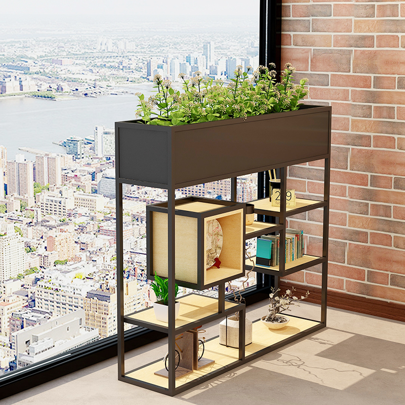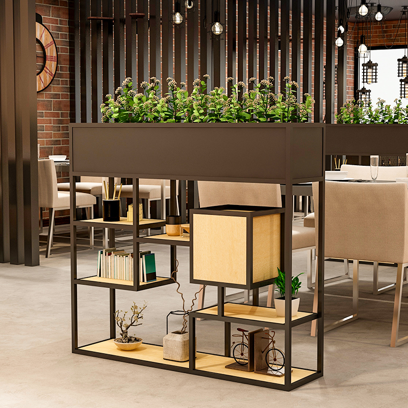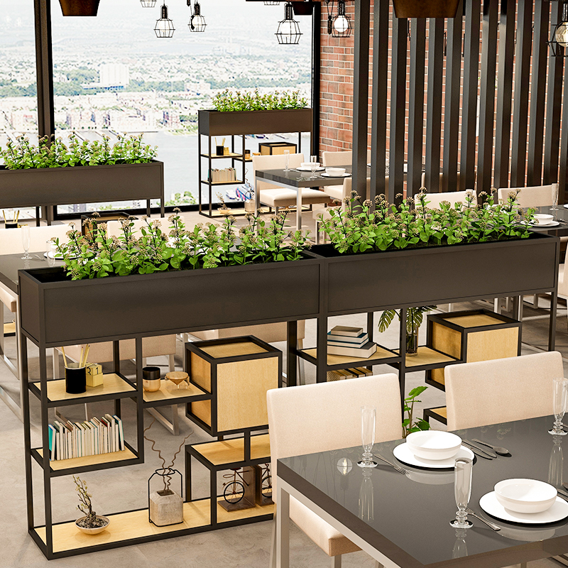 LOFT wrought iron partition rack simple solid wood partition flower rack dining room cafe office retro low flower rack